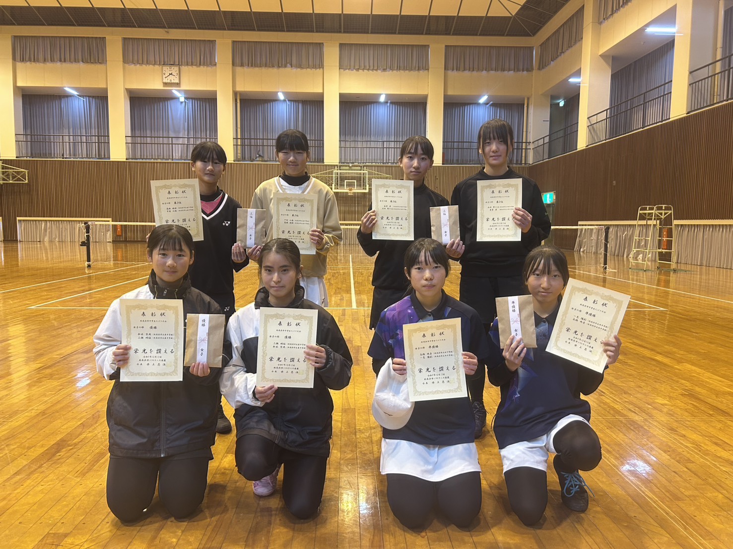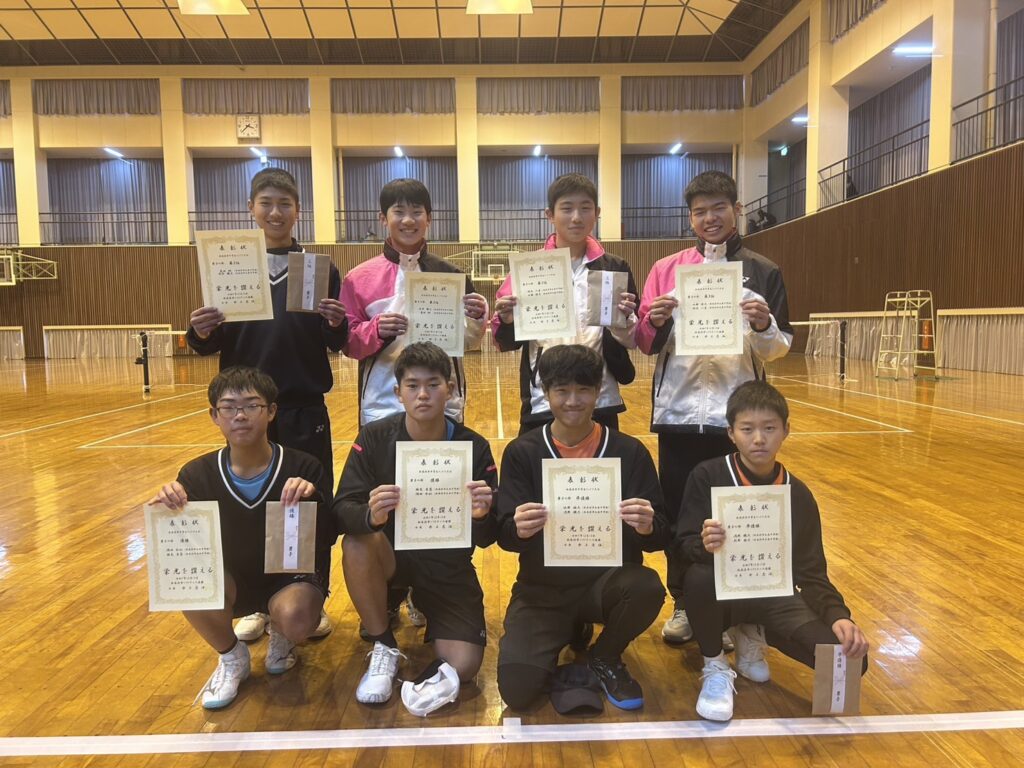 令和7年12月13日(土) 山根総合体育館に於いて、令和7年度新居浜市中学生選抜インドア大会が開催されました。この大会は市内成績の男女それぞれ上位16位ペアが参加して行われました。